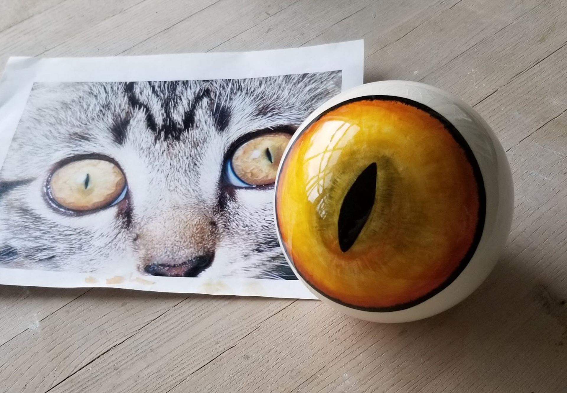 Cat eye commissioned piece for a replication of a pet cat's eye. Ceramics. 2018.